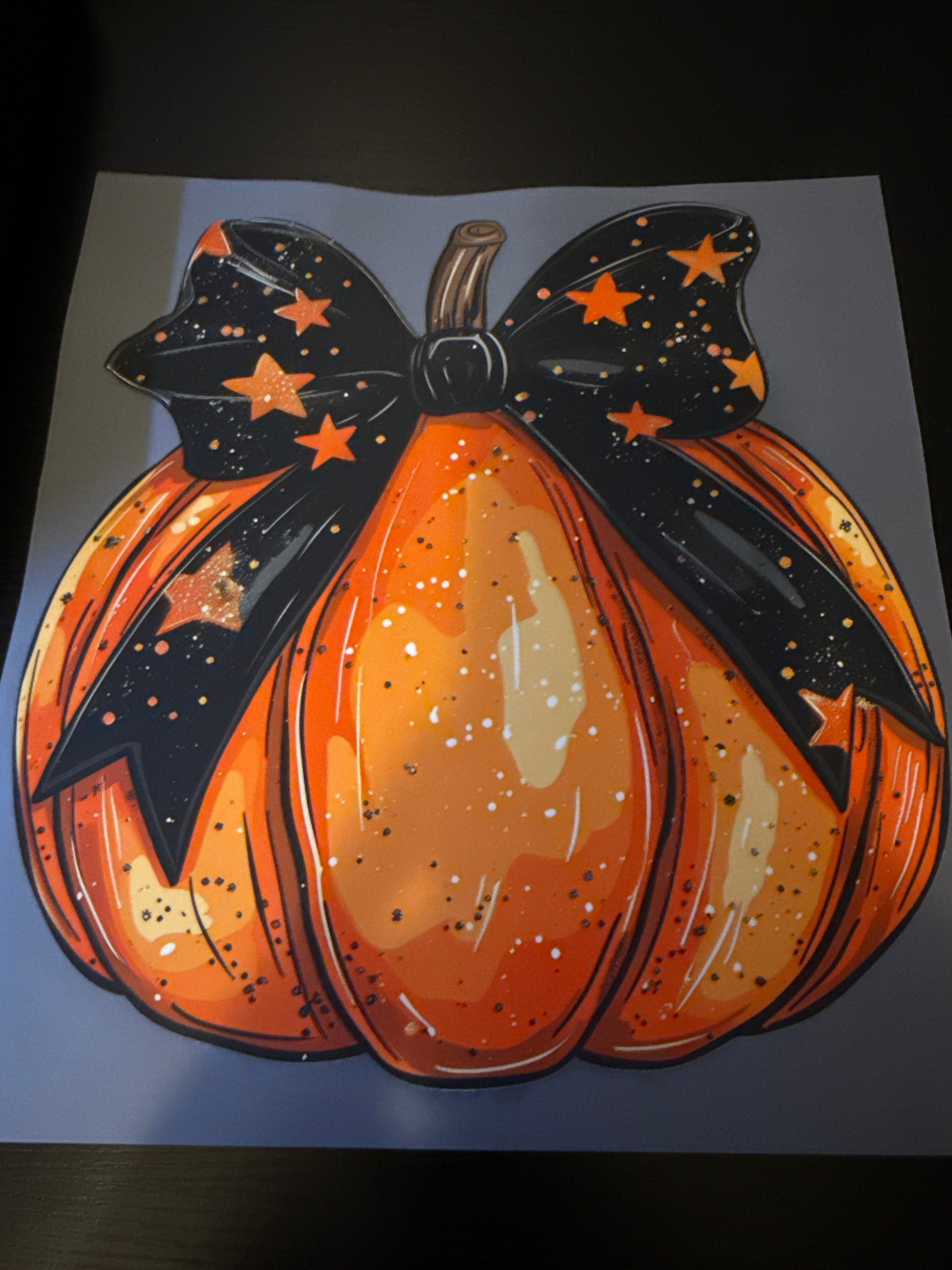 1 adult pumpkin with a bow